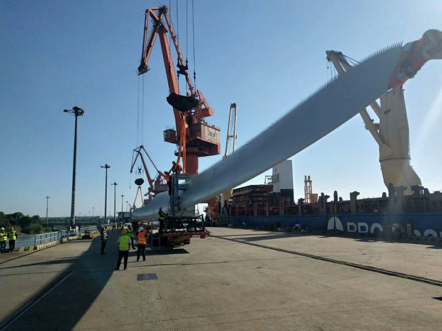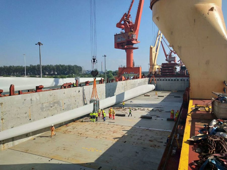 為了順利配合TPI風電葉片的出口,揚州港區(qū)在今年年初花費約1.2億元對港區(qū)3#泊位及配套場地和沿途道路都進行了升級改造,還將揚子江南路南端的“揚州港”巨石名片整體向東進行的移動。全部改造完成后,3#泊位和沿途道路將可滿足100米風電葉片道路運輸及裝船作業(yè)的所需條件。