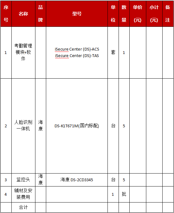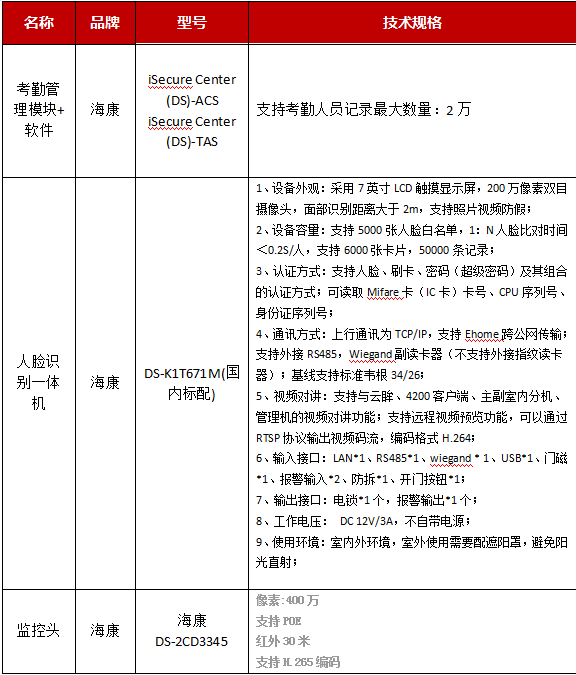 1.1.1本次招標(biāo)采購(gòu)5套人臉識(shí)別一體機(jī)、1套考勤管理模塊(含軟件)、5套監(jiān)控探頭用于揚(yáng)州港務(wù)集團(tuán)有限公司三個(gè)港區(qū)進(jìn)行員工考勤打卡。